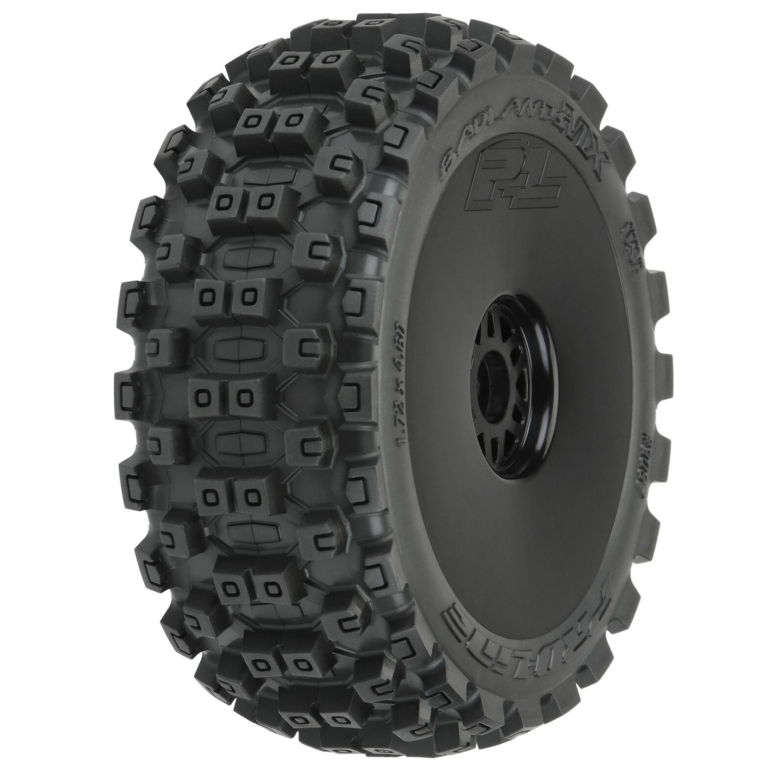 OverviewThis is a pair of Pre-Mounted Badlands MX Tires for 1/8 Buggy. Pro-Line is taking the 1/8 Buggy tire game to the next level with the Biggest and Baddest tire ever conceived: the Pre-Mounted Badlands MX! Pro-Line Badlands tires are known for having sweet Motocross inspired tread and the Badlands MX tires kick that up a notch with a Bigger and Bolder knobby tread that matches modern MX tire design. The Badlands MX is a true All-Terrain tire that will find traction on any surface but is best suited for loose & loamy dirt, mud, or grass. Just imagine your buggy throwing up huge rooster tails with these awesome looking tires! Now these iconic Badlands MX Tire is Pre-mounted on Velocity Wheels so you don't have to worry about gluing your own tires or waiting for them to dry. All you need to do is slap them on your buggy and get to ripping up the dirt! Be the first on your block to get the Badlands MX tires - Order yours today! Please note: All tires & wheels are sold in pairs, unless otherwise noted PRO906741 | Badlands MX M2 (Medium) All Terrain 1/8 Buggy Tires Mounted on Black 17mm Wheels (2) for Front or Rear |