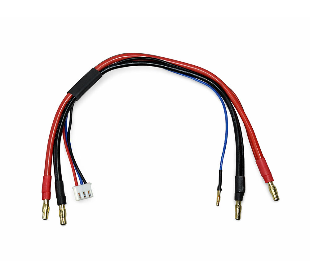 It includes an XH balance connector on the charger side and a 2mm gold balance connector on the battery side, allowing safe charging and balancing at the same time.