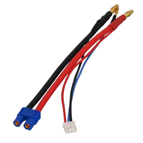 This lead connects a 4mm banana plug 2S LiPo battery to an EC3/IC3 male charge lead.