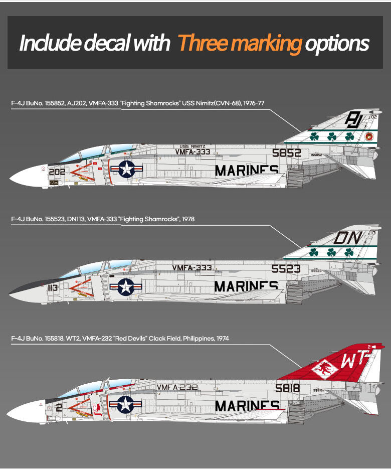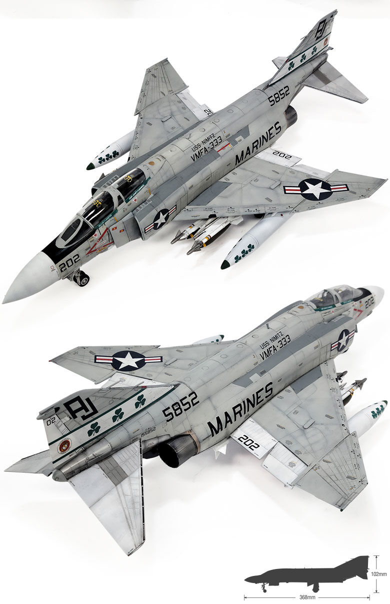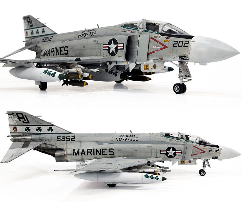 Authentic decal markings are provided for VMFA-333’s “Fighting Shamrocks,” complete with accurate squadron insignias and stenciling. With its impressive size and striking presence, this 1/48 scale Phantom II makes an excellent centerpiece for any aircraft model collection.
