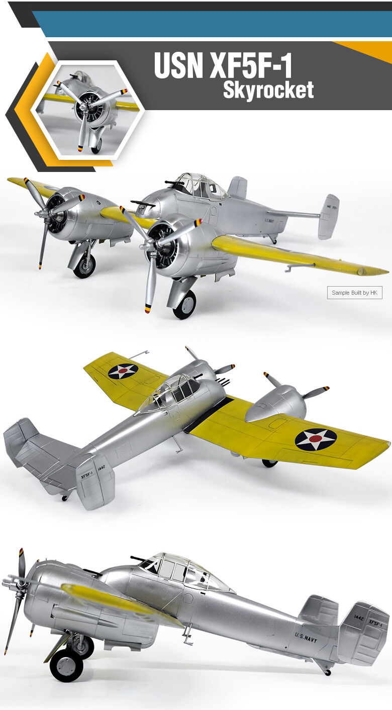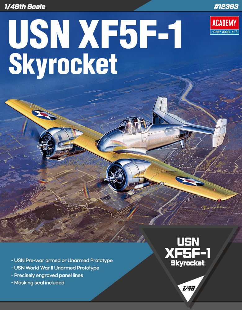 Build the unique U.S. Navy XF5F‑1 Skyrocket with this 1/48 scale model kit from Academy. Known for its twin-engine design and bold pre‑WWII style, the Skyrocket makes a fascinating addition to any aircraft collection.