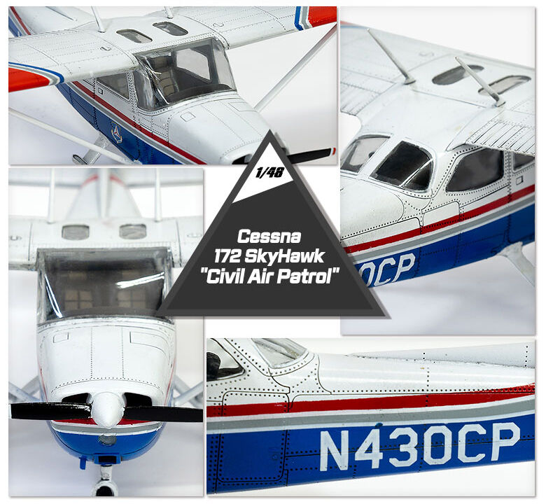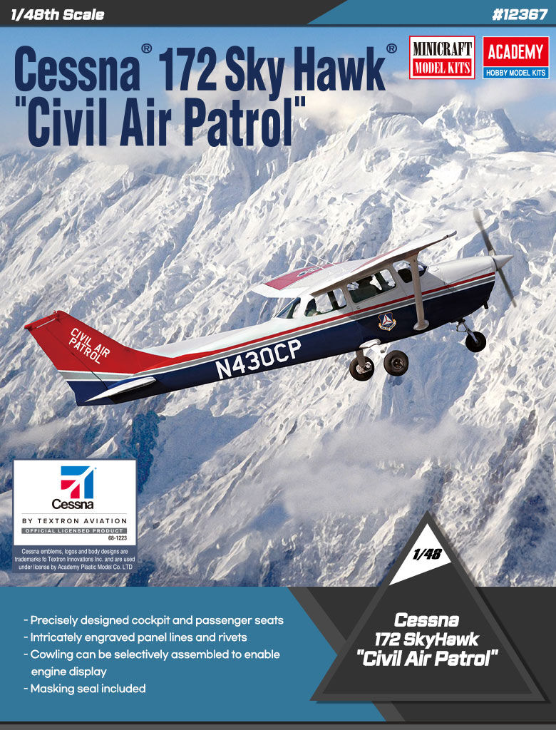 The Academy 12367 Cessna 172 SkyHawk "Civil Air Patrol" 1/48 Scale Plastic Model Kit brings to life one of the most recognizable and widely flown light aircraft in aviation history. The Cessna 172 SkyHawk has been a staple of flight training, private aviation, and Civil Air Patrol service since its introduction in the 1950s, making it an enduring favorite among pilots and enthusiasts worldwide.