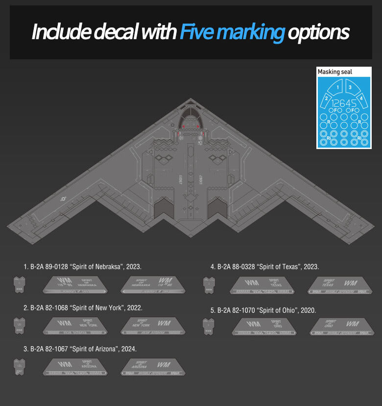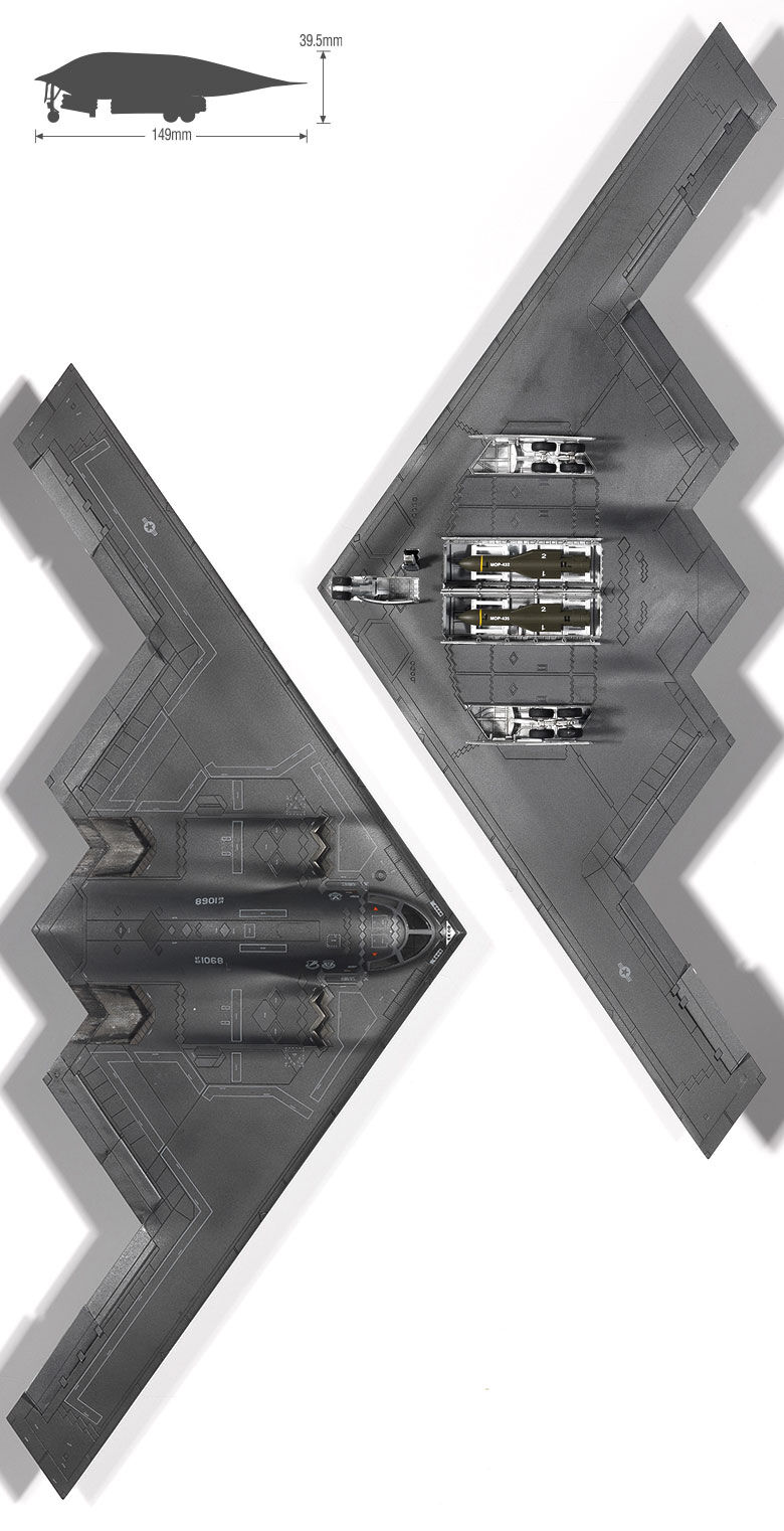 Perfect for modelers interested in modern military aviation, this compact yet impressive kit captures the sleek form and technological sophistication of the B-2A Stealth Bomber, making it a standout addition to any aircraft collection.