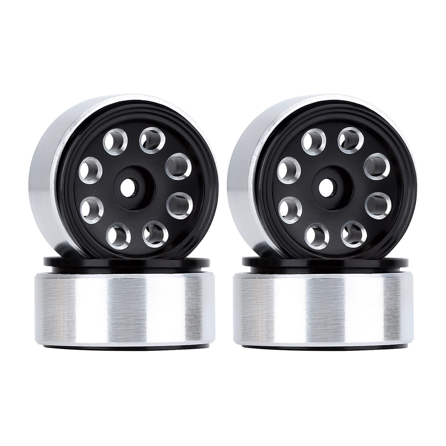 Finished in a sleek black face with detailed eight-hole styling and silver outer barrel, these wheels combine durability and premium scale detail in one complete 4-piece set.