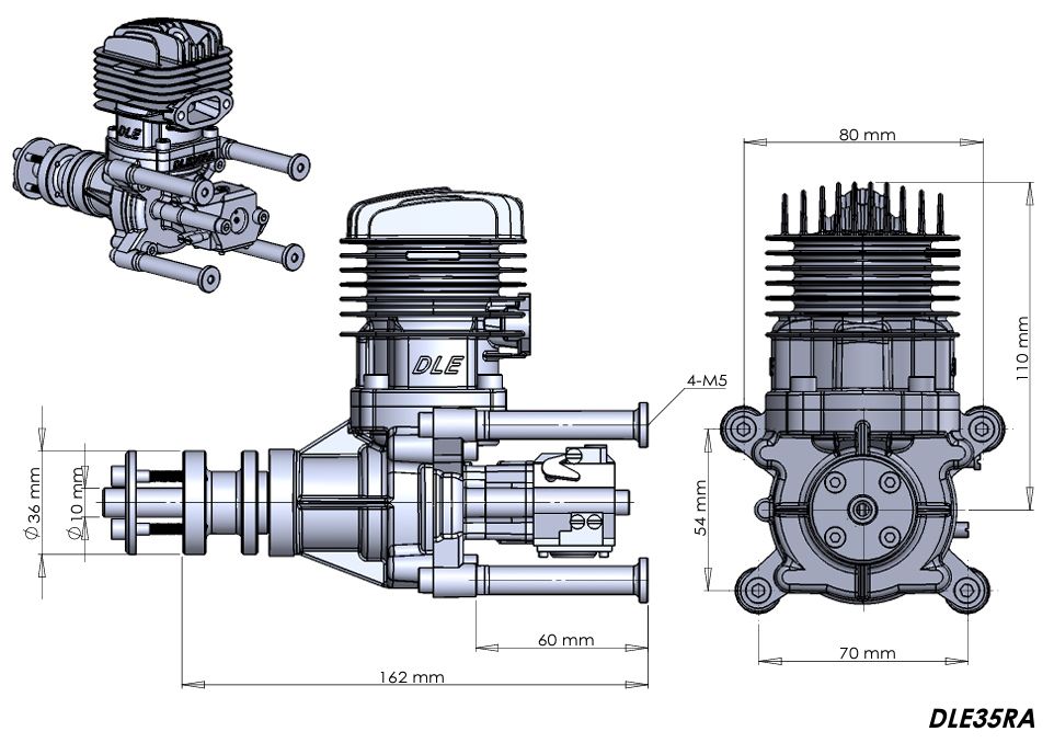 - Also features a special aluminium alloy crankcase, high-quality sealed crankshaft bearings and DLE-customised carburettor.
