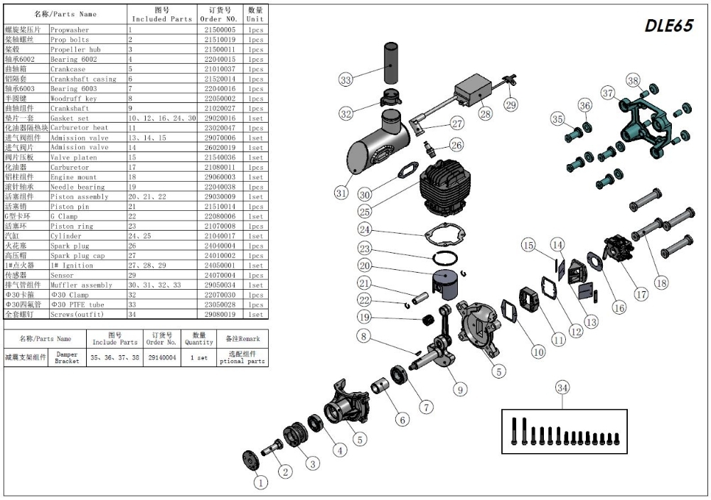 DLE 65 Gasket Set, Part 10