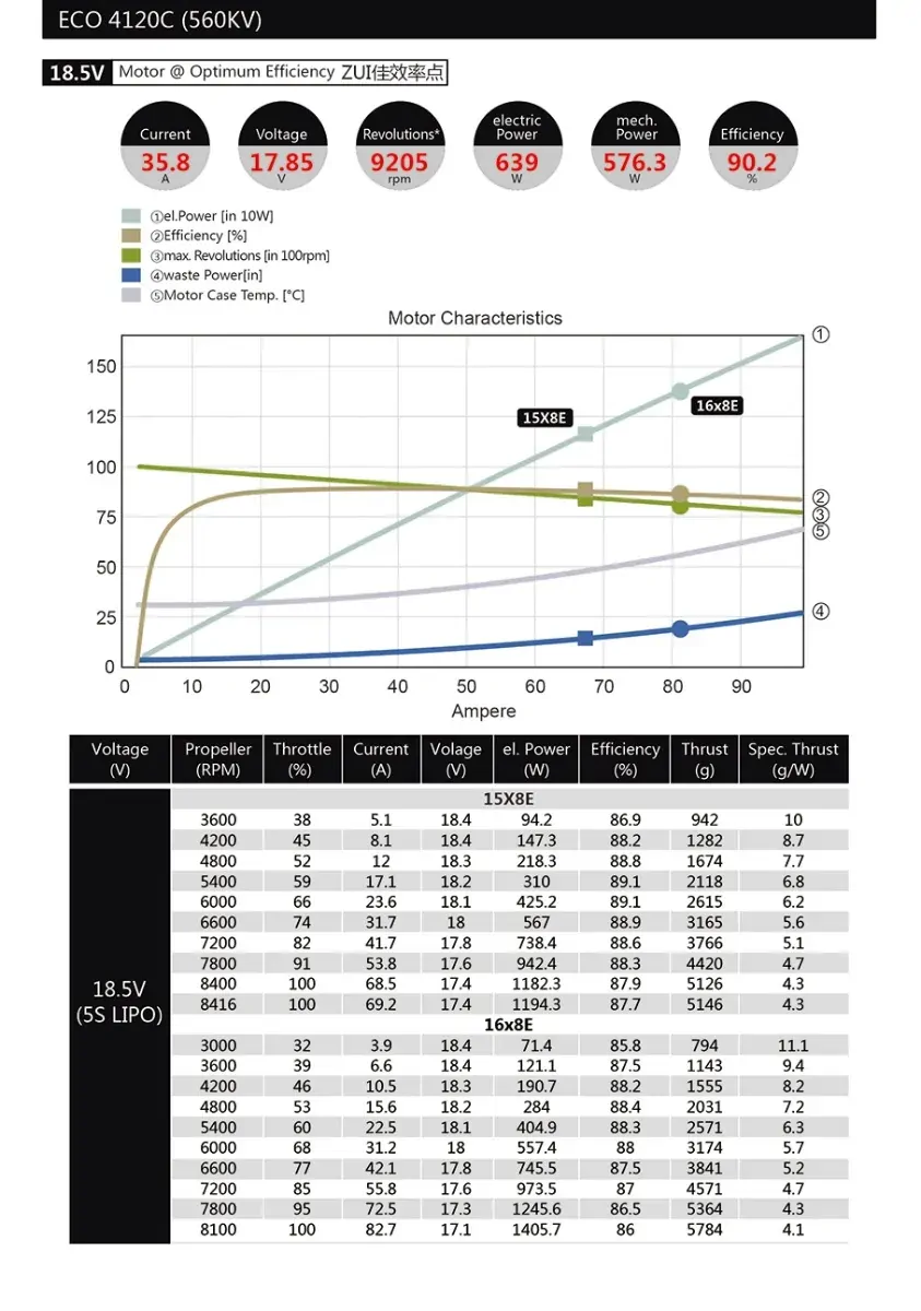 | Propeller | 5S: 16x9E, 15x8E 6S: 14x6E, 13x8E |