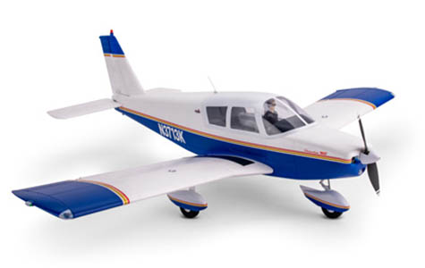 Functional Scale FeaturesAn accurate scale outline captures the iconic shape of the Cherokee including the constant chord wing that’s equipped with operational slotted flaps to deliver improved slow-flight handling and shorter take offs and landings. The unique full-flying stabilator (stabilizer/elevator) offers authentic pitch control and features an updated mounting system to reduce play for improved precision and control. A shock-absorbing nose strut featuring an improved design for easier maintenance and oversized wheels make it possible to fly from a variety of paved, dirt and even some grass surfaces. Plus, factory-installed LED lighting, including navigation lights, strobes on the wing tips, a tail beacon and landing lights, add to the scale realism and authenticity. |