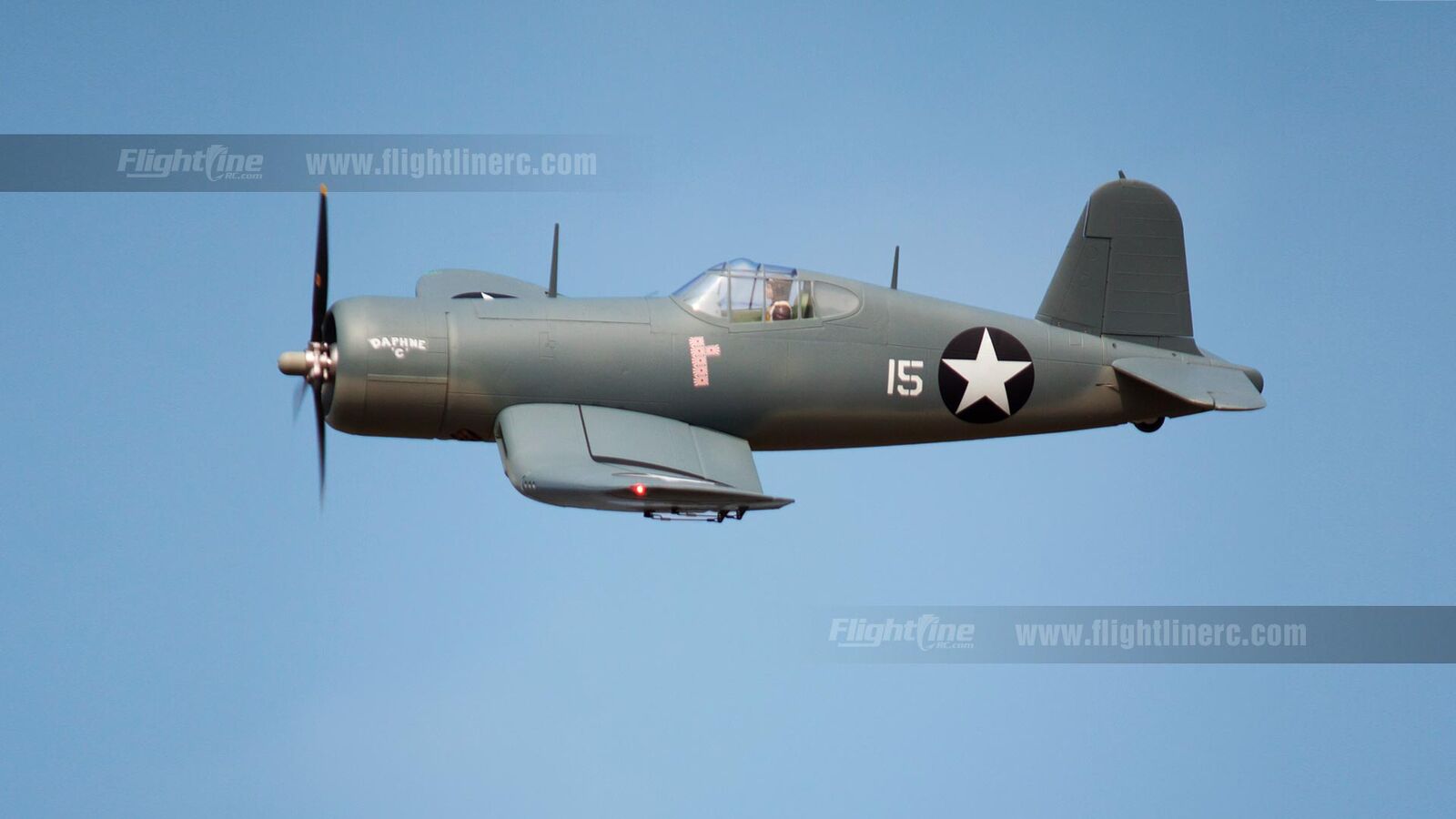 The FlightLine F4U Corsair stock PNP version is equipped with a 5055-390KV brushless outrunner motor and scale 3-blade propeller and 80A ESC. The specially molded large size propeller and all-new motor help power the Corsair through aerobatic maneuvers with ease while retaining a reasonable scale appearance. The model can cruise at ~40-50% throttle setting and loop consecutively at only 50%-60% throttle setting. Vertical performance is also excellent for a scale model this size! With the recommended Admiral 6S 5000mAh lipo battery, the F4U Corsair has a level top speed of 125kph/75mph, with 5-9 minutes of flight time depending on throttle management.