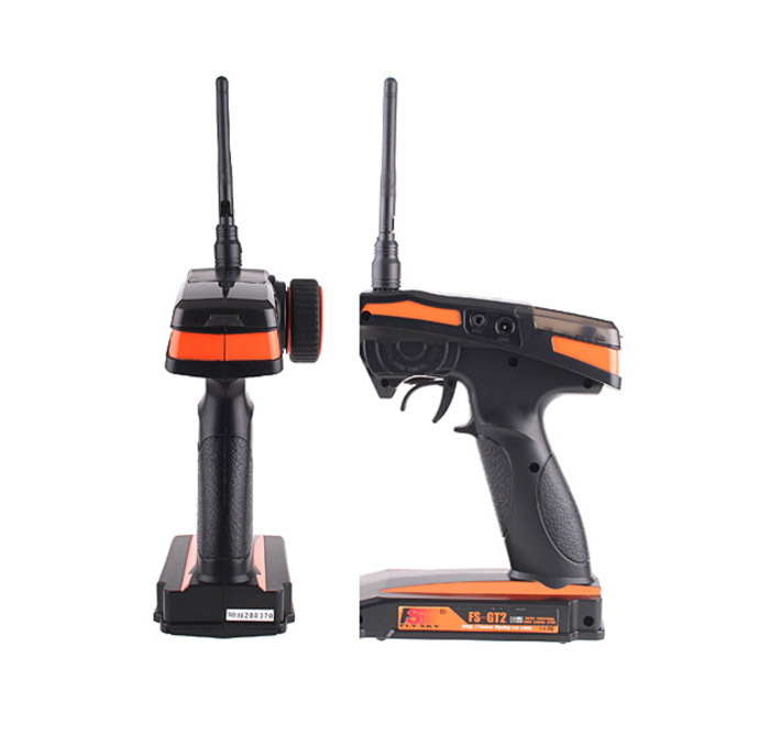 The Flysky FS-GT2 is a affordable, 2CH 2.4G radio system and also a very simple setup for your RC vehicle. The automatic frequency hopping digital system provides a strong, reliable 2.4GHz signal, so rest assured you'll always be in control. Included in the package is a 3-channel mini receiver that will fit in most vehicles. The ergonomic feel of the trasnsmitter will feel good in your hands even after long track sessions.