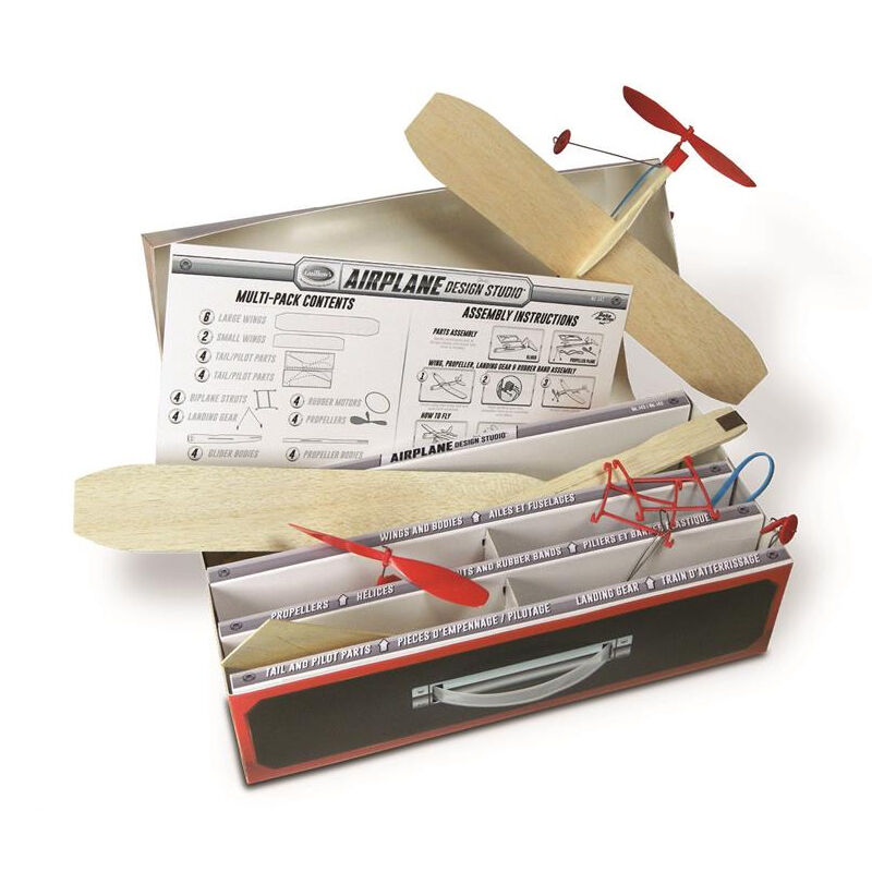 Designed for young aviators, this hands-on kit lets kids design, build and fly their very own model airplanes. With over 35 included parts — including balsa wood wings, rudders, propellers, rubber band motors, wheels and more — the possibilities are limited only by imagination.