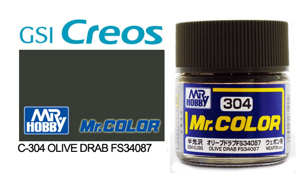 Gunze C304 Mr. Color Semi-Gloss Olive Drab FS34087 Solvent-Based