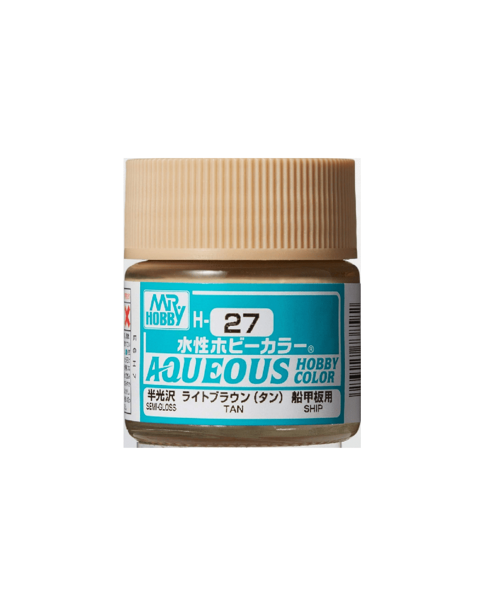 H27 Gloss Tan Aqueous Hobby Color is a very safe paint that has a high degree of user-friendliness. Aqueous Hobby Color paint can be diluted with water if desired, while paint brushes can be cleaned and washed out in the water. Ensuring that this is before the paint is dry. The solvent contained in Aqueous Hobby Color paint is very mild.