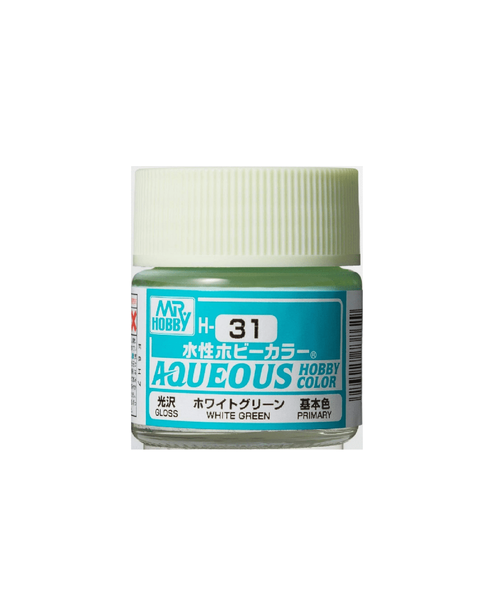 H31 Gloss White Green Aqueous Hobby Color is a very safe paint that has a high degree of user-friendliness. Aqueous Hobby Color paint can be diluted with water if desired, while paint brushes can be cleaned and washed out in the water. Ensuring that this is before the paint is dry. The solvent contained in Aqueous Hobby Color paint is very mild.