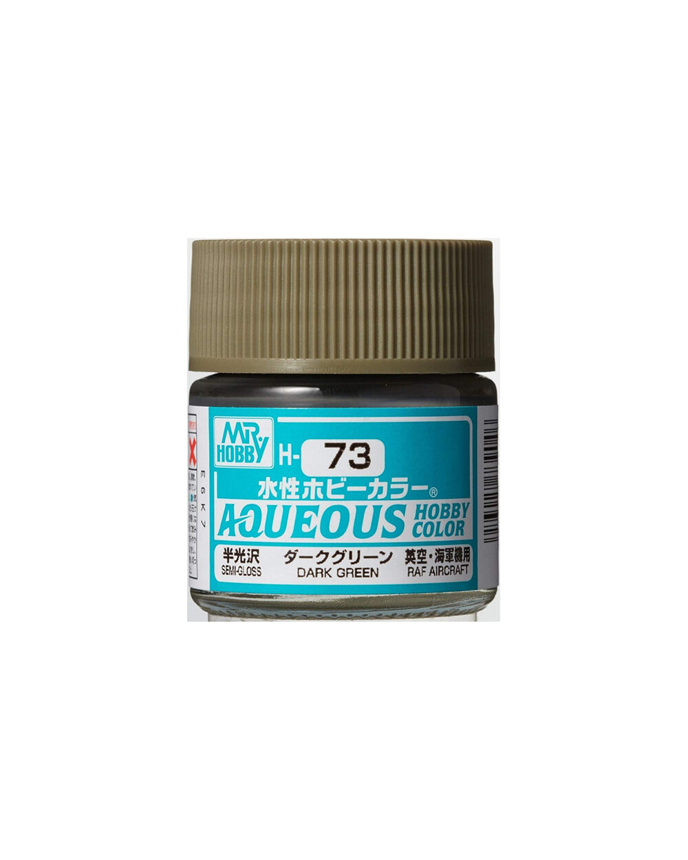 H73 Semi-Gloss Dark Green Aqueous Hobby Color is a very safe paint that has a high degree of user-friendliness. Aqueous Hobby Color paint can be diluted with water if desired, while paint brushes can be cleaned and washed out in the water. Ensuring that this is before the paint is dry. The solvent contained in Aqueous Hobby Color paint is very mild.