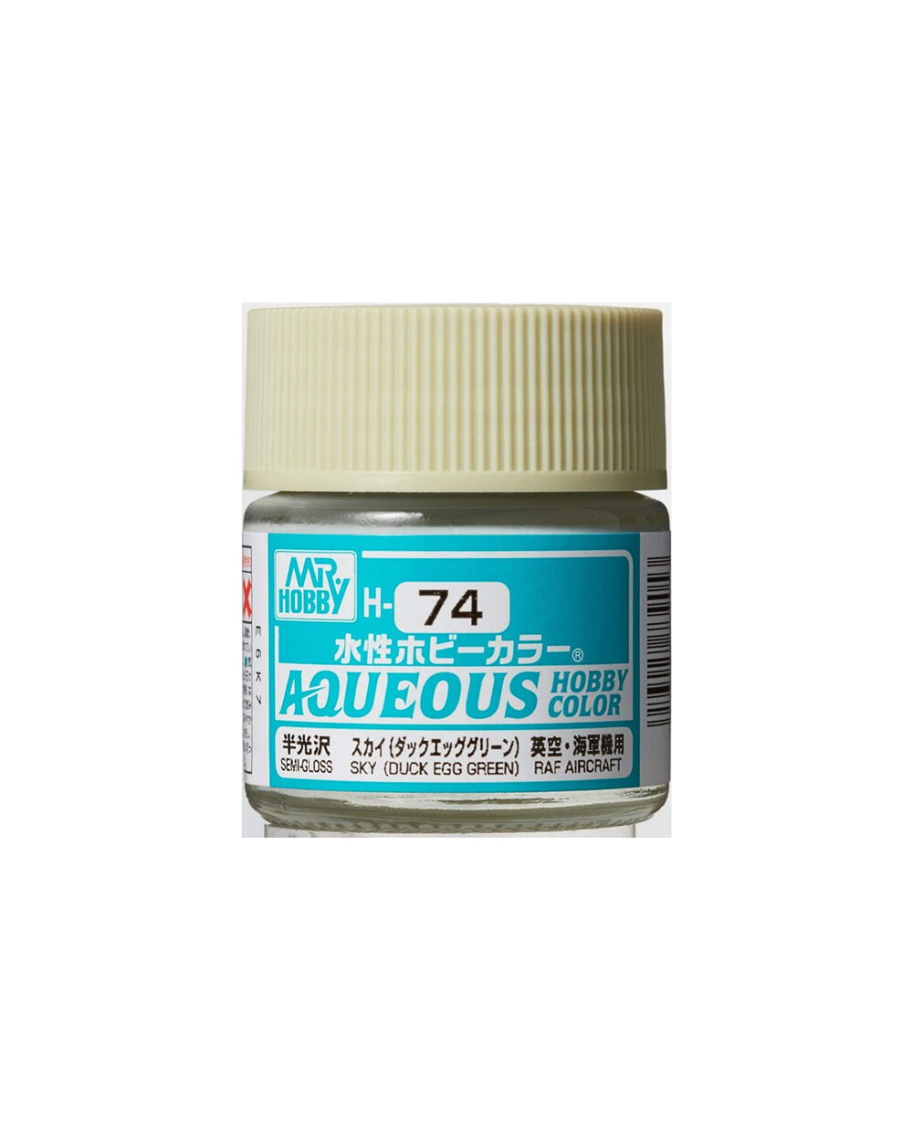 H74 Semi-Gloss Sky Duck Egg Green Aqueous Hobby Color is a very safe paint that has a high degree of user-friendliness. Aqueous Hobby Color paint can be diluted with water if desired, while paint brushes can be cleaned and washed out in the water. Ensuring that this is before the paint is dry. The solvent contained in Aqueous Hobby Color paint is very mild.