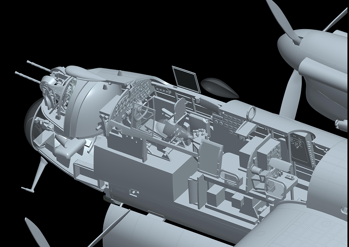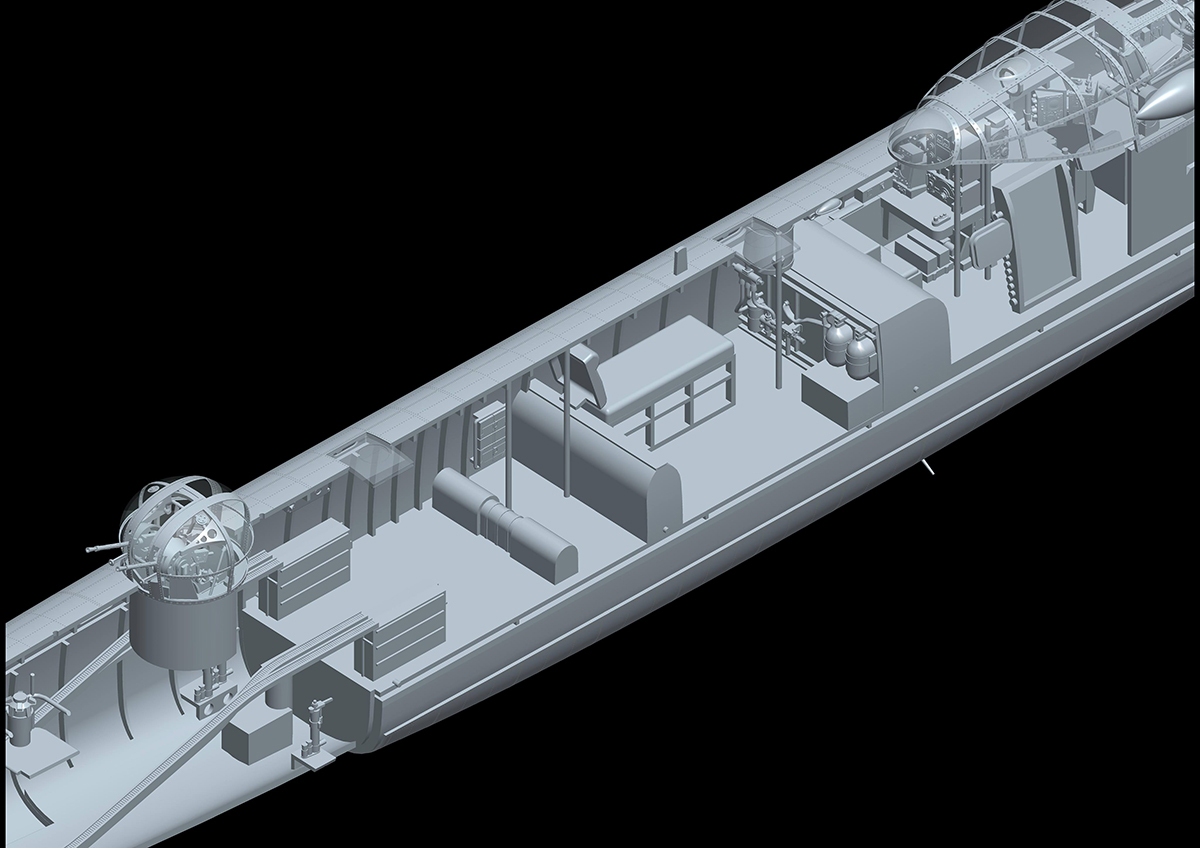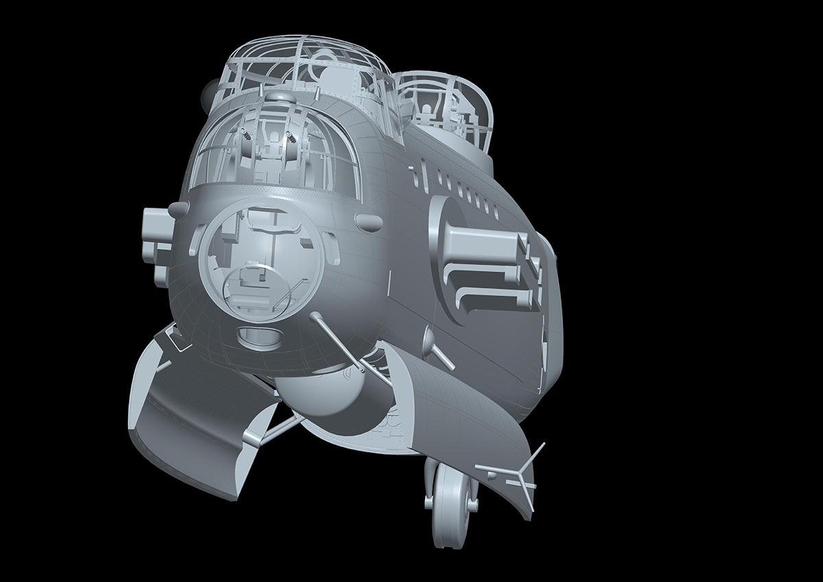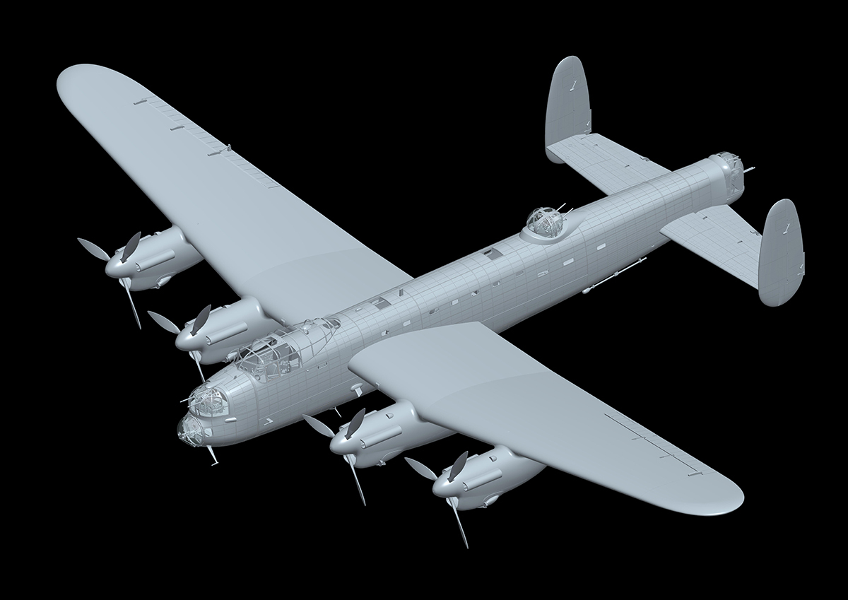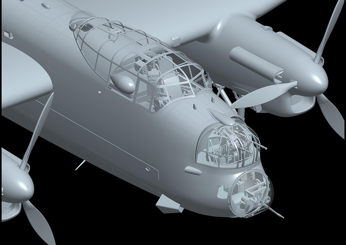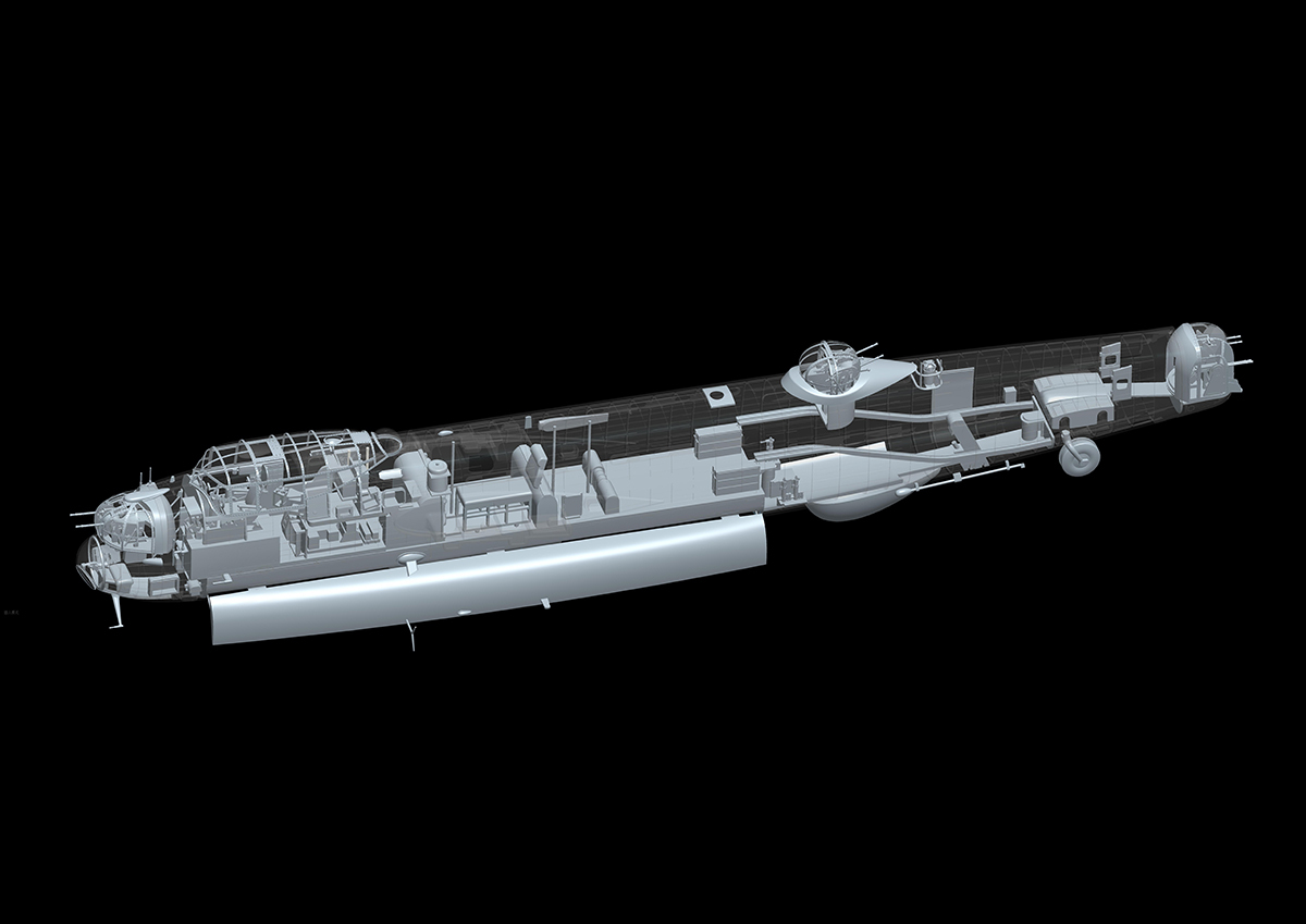 However, the basic Manchester airframe was of sound design. A logical solution was to increase the wingspan and replace the two Vultures with four Merlin engines. The engine-installation originally developed by Rolls-Royce for the Beaufighter II, was quickly adapted and fitted in graceful underslung nacelles. The prototype BT308 made its first flight on January 9th, 1941 and it soon proved to be an excellent aircraft with good handling and high load capability. Initially designated Manchester III, it was soon renamed Lancaster. The general outline of the Lancaster remained the same throughout production, apart from the MK II which was used in Bristol Hercules radial engines, in case a shortage of the Merlin should arise. The Mk 1 and III were similar, differing only in the type of Merlin engine fitted. In the case of the Mk III, the Packard built Merlin 28 was utilised. The Lancaster began to equip bomber squadrons in early 1942, where it quickly became the backbone of RAF Bomber Command.
