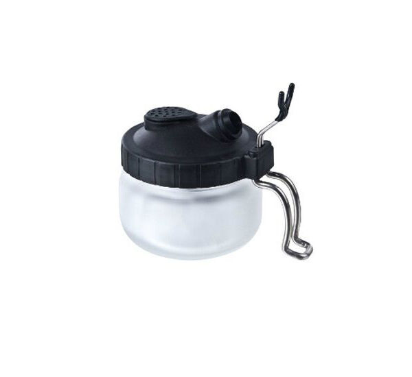 The glass container is durable and easy to clean, while the built-in filter helps capture paint residue. Its compact size makes it ideal for any hobby workbench.