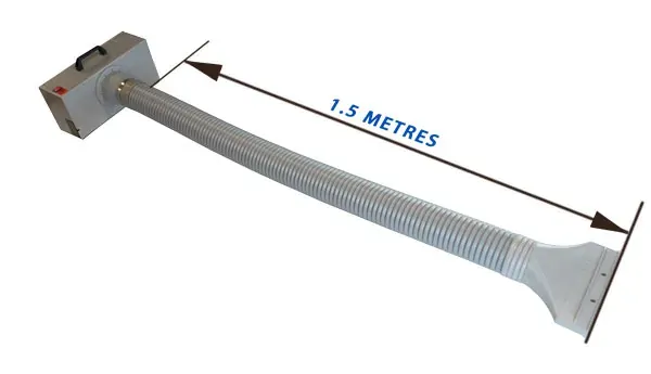 This airbrush spray booth comes with a fully flexible air extraction hose which can be used to direct contaminated air out of a window.This creates a much cleaner and safer working environment.The air extraction hose is approximately 5.5 foot long and push fits together.