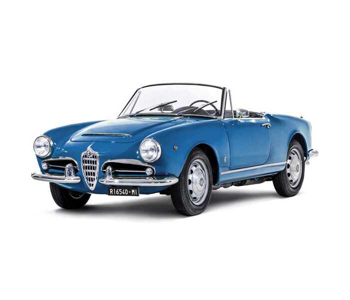 Equipped with a fully synchronized five-speed gearbox, the Giulia Spider was offered in two versions: the 92hp “Normale” and the more powerful 112hp “Veloce” fitted with twin carburettors. Celebrated for its performance and unmistakable Italian design, the Giulia Spider enjoyed strong commercial success and remains a classic icon of 1960s motoring.
