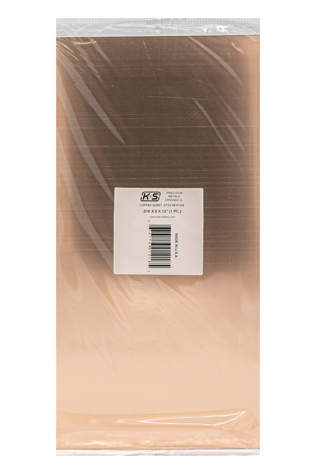 This is a Package of One .016" Thickness 6" x 12" Sheets of Copper from K & S Engineering.