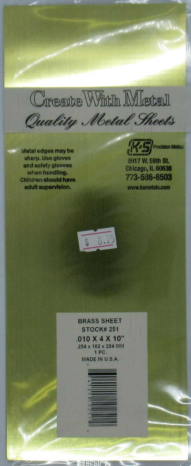 This Package includes One x 4 x 10 Brass Sheet (.010) by K&S Engineering.