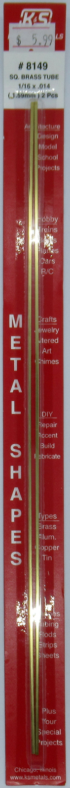 This is the 1/16''x12'' Square Brass Tube .014 Wall from K&S Precision Metals.