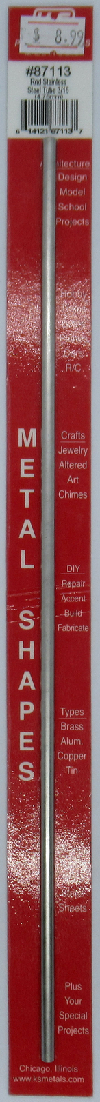 This is the 3/16 x 12" Round Stainless Steel Tube from K&S Precision Metals.