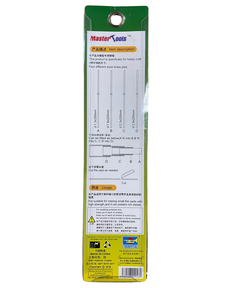 The Master Tools 20cm Brass Pipe Set #5 (4pcs – Mixed Sizes) set is an essential resource for scale modellers, scratch builders, and hobbyists who need precision metal tubing in a variety of diameters. Each brass pipe measures 20cm in length but features a different size—1.3mm, 1.8mm, 2.3mm, and 2.8mm—ensuring maximum versatility for detailed construction and custom modifications.