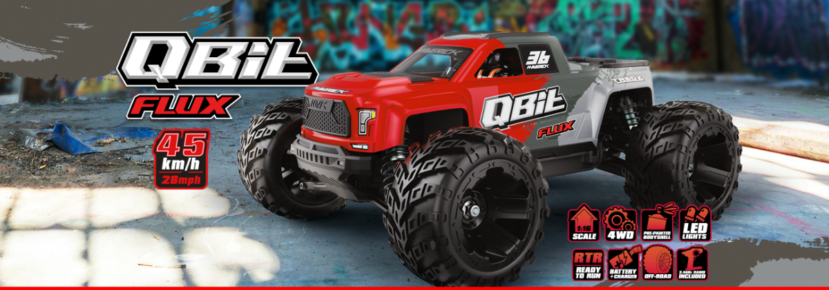 From the rugged, ready-to-rip QBit, to the blazing brushless QBit Flux, all the way to the uncompromising, high-velocity QBit Pro, every model is loaded with true monster-truck attitude: full-time 4WD, independent suspension, metal gearing, and oil-filled shocks that soak up the rough stuff like a champ. Add in splashproof electronics, bold lighting, and a tough-as-nails chassis, and you’ve got a fleet built to bash harder, jump higher, and keep coming back for more.