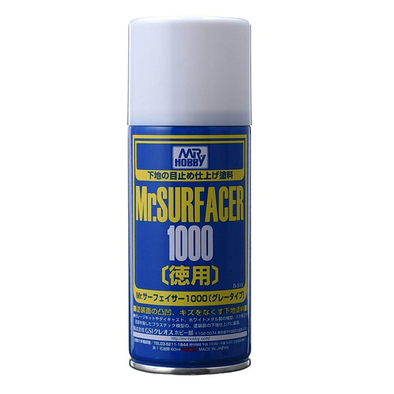 Mr. Surfacer 1000 contains finer granules than Mr.Surfacer 500.They are both used in much the same way but due to the finer granules contained in Mr Surfacer 1000, after sanding with