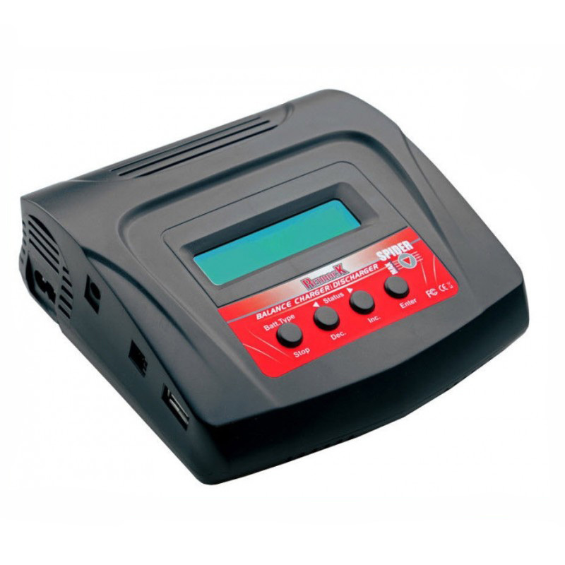 REDBACK RACING SPIDERMAX10. 80W, Microprocessor Controlled, High Performance, rapid Balanced Charger/Discharger suitable for LI-ION, LI-PO, LI-FE, LIHV( 1-8 cells ), NiCD, NiMH, ( 1-16 cells ), Pb, ( 2-28V ) Batteries. Input: AC 100 - 240V or DC 11.0 - 18.0V. Charge rate: 0.1 - 10Amps, Disch. Rate: 0.1 - 2.0Amps. Built in USB 5v/2.1A charging port., Servo Tester.