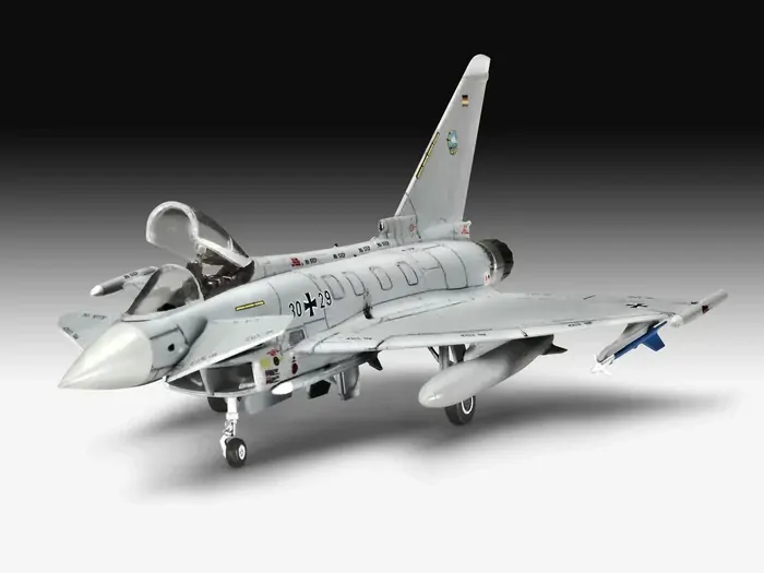The model kit impresses with its new kit and finely structured surfaces with sunk "sheet metal bumps". He also has a detailed cockpit, a detailed chassis as well as two outdoor tanks and eight steering weapons (4 meteor, 4 Amraam, 2 Iris-T and 2 Asraam). There are also two decal versions: German Air Force and RAF.
