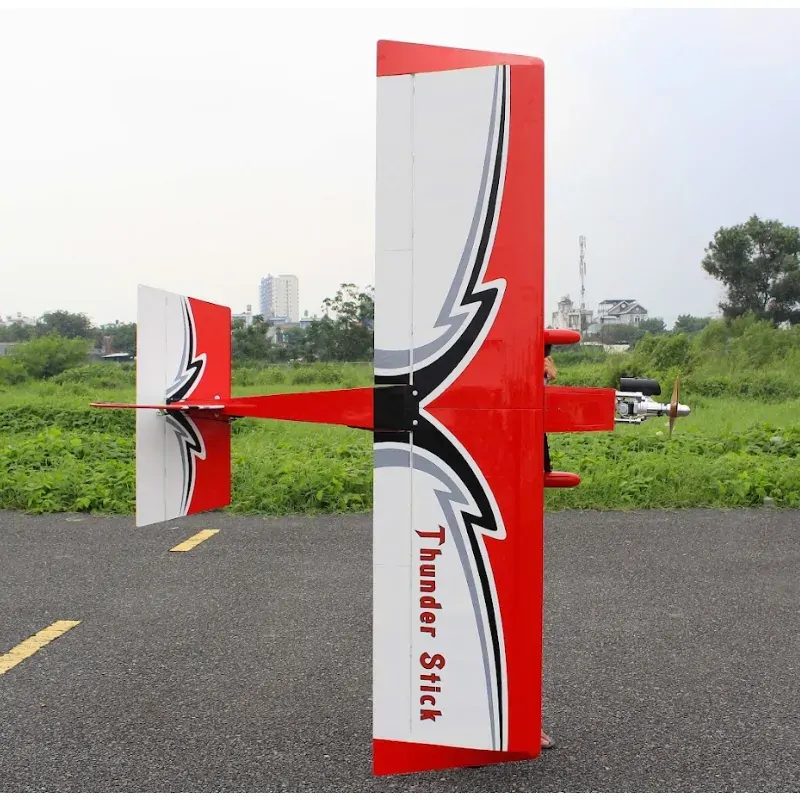 The Giant Thunder Stick Aerobatic Sport 96.5” ARF 55-65cc was designed with the intermediate/advanced sport flyer in mind. It is a sport/aerobatic airplane which is easy to fly and quick to assemble. The airframe is conventionally built using balsa, plywood and carbon fibre to make it stronger than the average ARTF, yet the design allows the aeroplane to be kept light. You will find that most of the work has been done for you already. Flying the Giant Thunder Stick Aerobatic Sport 96.5” ARF 55-65cc is simply a joy.