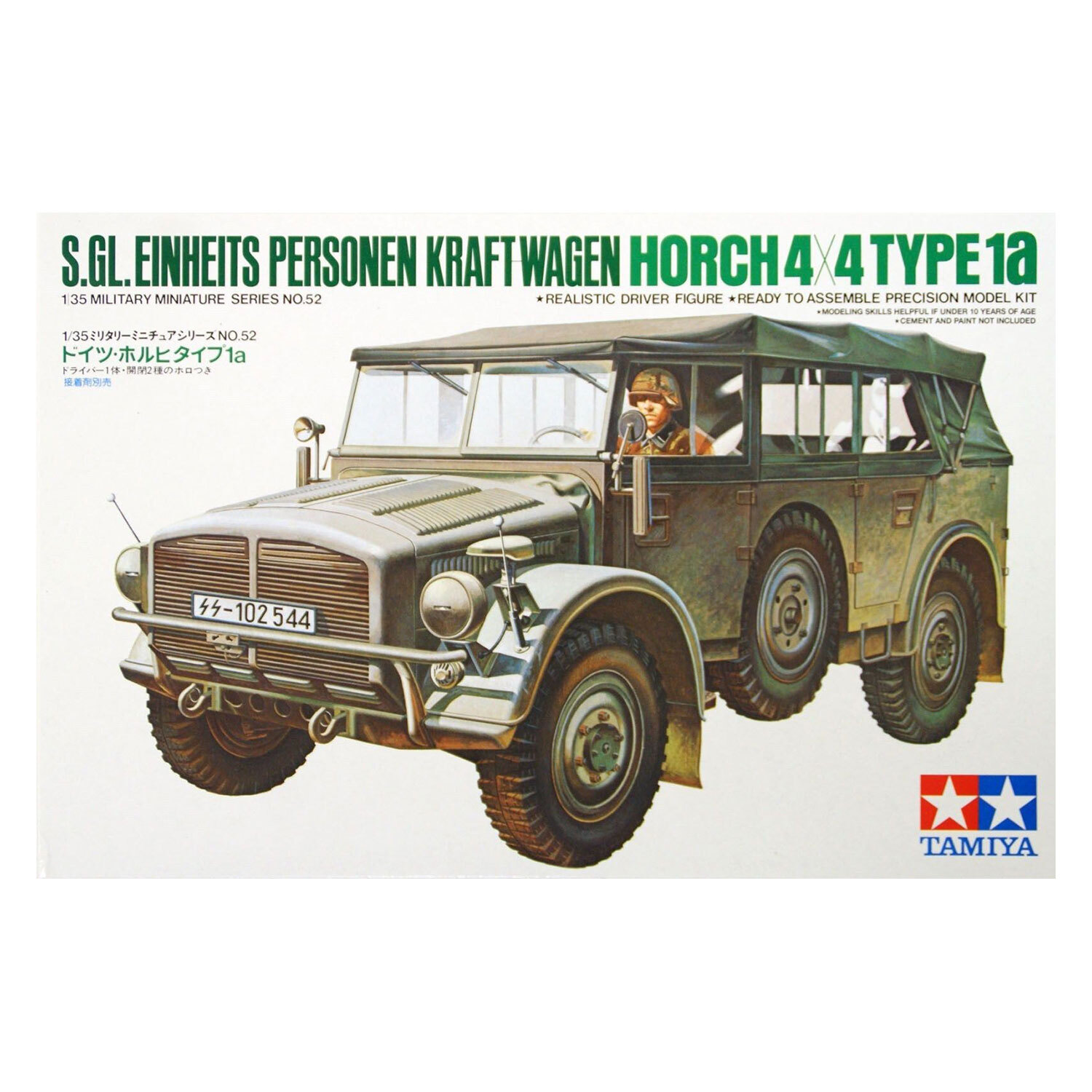 | Schwere Einheits PKW A.U. Horch types 1a and 1b: As the Reichswehr of the 1920's was very much limited both in size and scope by the terms of the Versailles Treaty, and as the economic situation did not, in any case, allow lavish spending on equipment, most of the transport needs of the army were met by using adapted commercial vehicles. Most widely used of all vehicle types, because they were cheap and very mobile, were personnel carriers based on commercial car chassis fitted with a simple open body of the type known as the Kubelsitzer (literally "bucket-seater"). This type of vehicle, as the name implies, consisted of little more than the chassis and normal front end, as in the normal motor car, with sturdy metal backed seats secured to the chassis frames. Folding canvas screens took the place of doors, and there was a canvas cover, as in a sports car, to be erected in foul weather. Though cross-country performance was very limited, the style of the vehicle was something of a trend setter and small utility personnel carriers have since become common equipment in all armies. |
