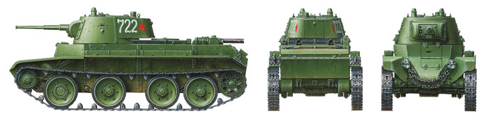 | An Important Step in Russian Tank Evolution The BT-7 was a highly-maneuverable tank with a powerful 45mm main gun in addition to sloped front armor, which made it the pillar of the Russian tank divisions. The 1937 model was a defensive upgrade to its predecessors, featuring as it did sloped armor all around the body in place of the previous flat version. This design proved to be successful enough for use in its successor, the T-34. |