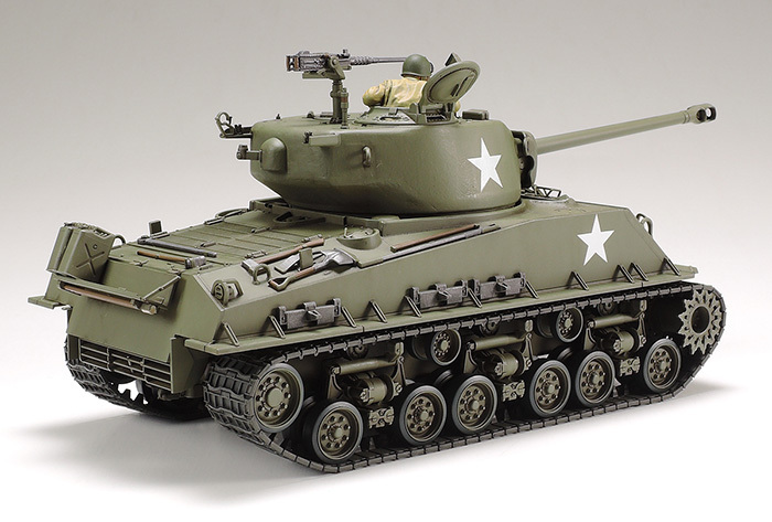 | About the Model ★This is a 1/35 scale plastic model assembly kit. Length: 214mm, width: 86mm. ★Tamiya undertook exhaustive surveys of real M4A3E8s in order to depict its form with great accuracy, including the subtly curved turret surfaces, flat welded hull panels and the HVSS. ★Slide molded parts artfully capture surface textures of cast turret and welded upper hull panels. ★Wide, single-pin T66 tracks are realistically depicted using belt type parts. Drive sprockets feature precisely molded holes. ★Engine grille, rear-installed deflector, and tool parts showcase stunning realism. ★Clear parts recreate headlight lenses and cupola vision blocks. ★Features commander torso figure and decals to recreate tanks from 2 units in the European Theater at the end of WWII. |