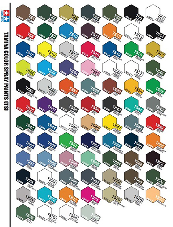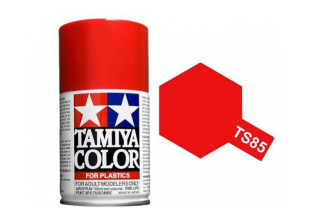 Tamiya TS-85 Bright Mica Red Ferrari #85085 These cans of spray paint are extremely useful for painting large surfaces. The paint is made up of a synthetic acrylic lacquer that cures in a short period of time. Each can contains 100ml of paint, which is enough to fully cover 2 or 3, 1/24 scale sized plastic model car bodies. Tamiya spray paints are not affected by acrylic or enamel paints. They may be applied over a cured spray painted surface.