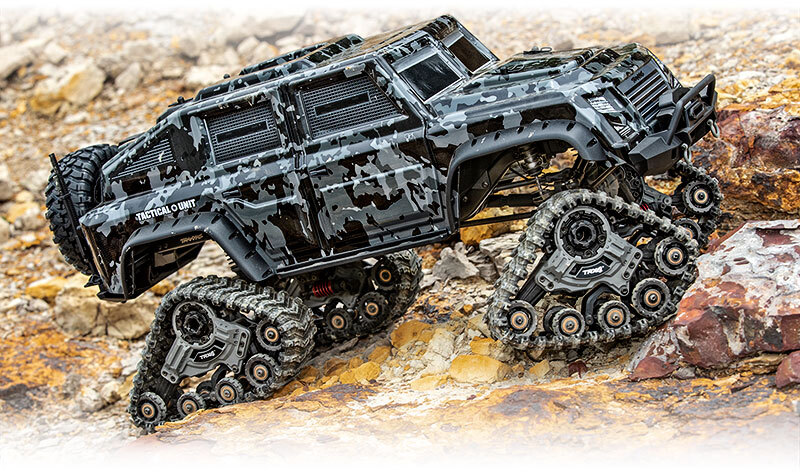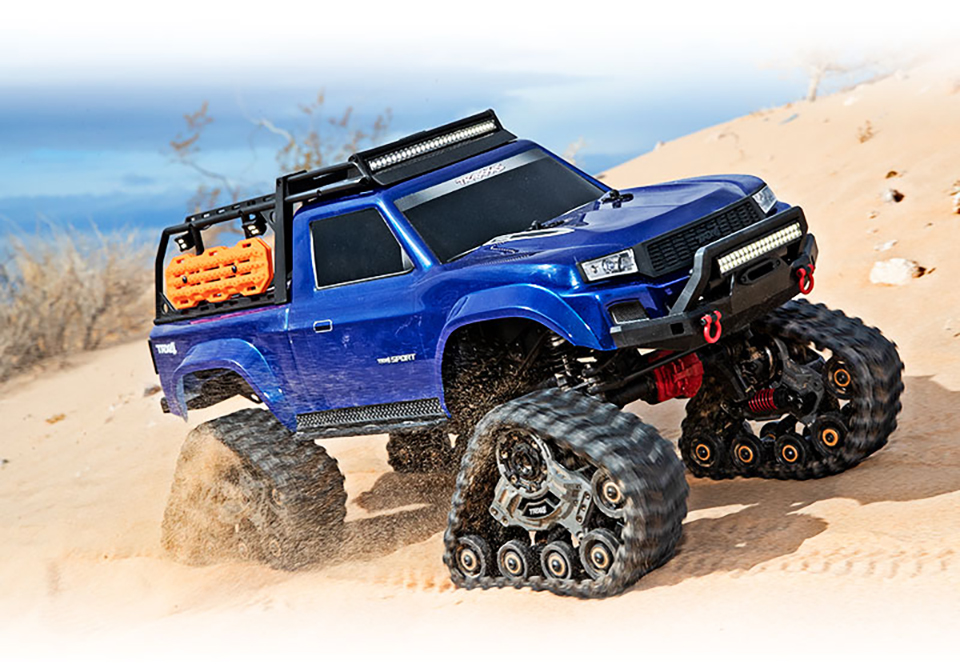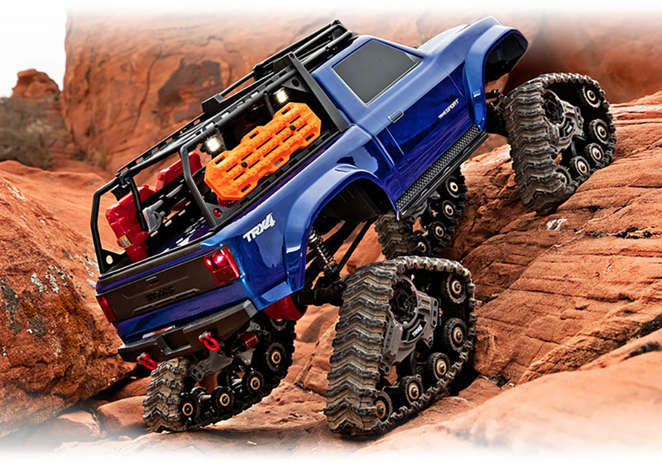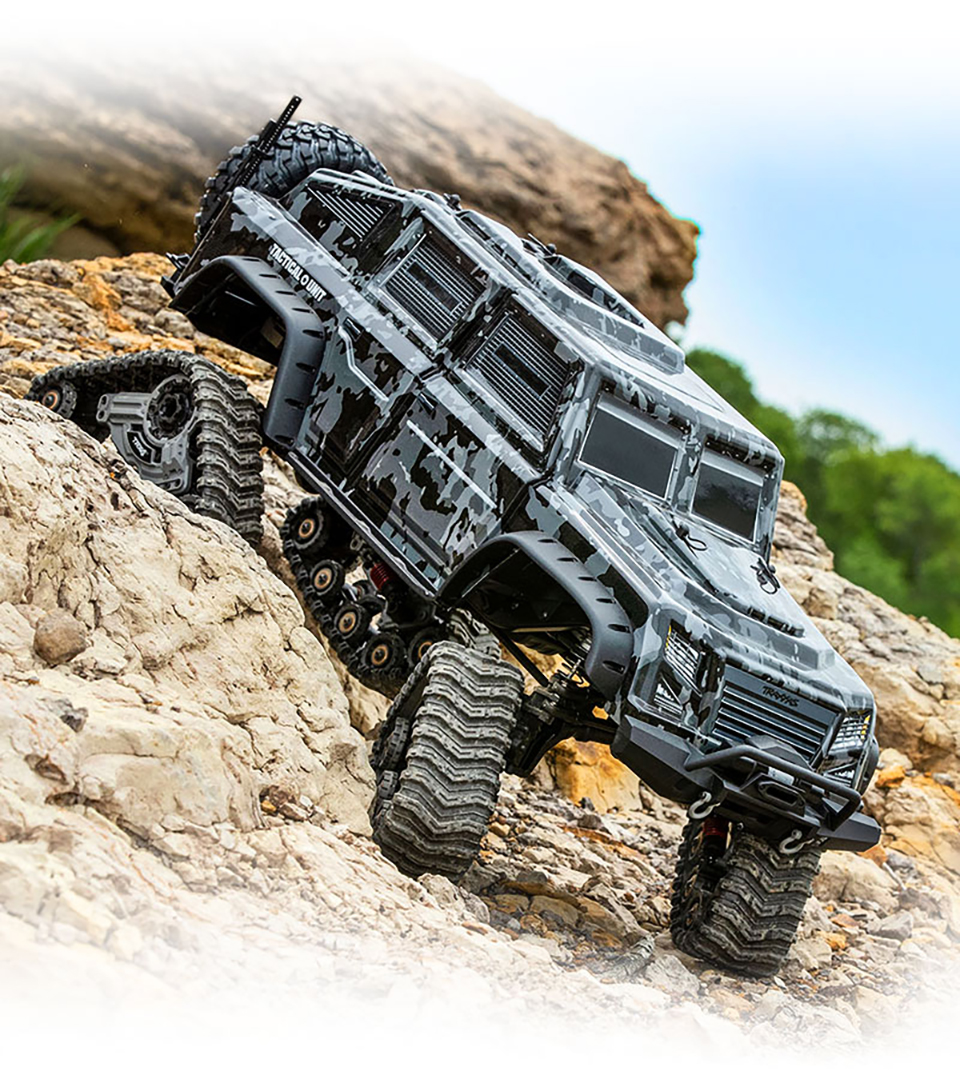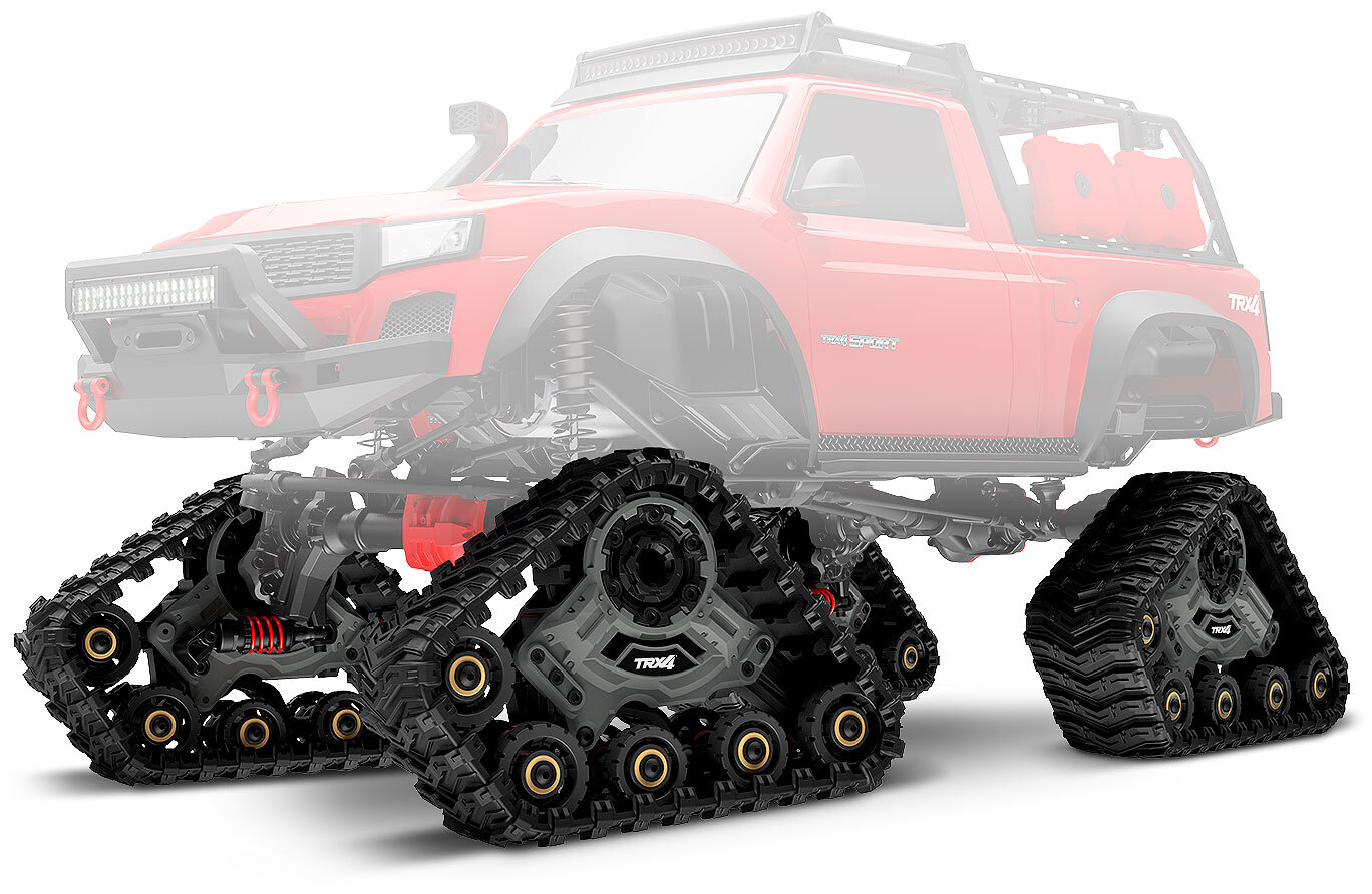 Traction Redefined New all-terrain Traxx™ provides the most significant traction upgrade you can make to the TRX-4. The TRX-4 already has a go-anywhere attitude and the gear to match, but installing a set of Traxx yields a machine that feels practically unstoppable on virtually any terrain. The enormous contact patch and grippy treads shrug off the deepest mud and float across deep sand. Traxx raises the portal axles even higher (over 16mm!) for increased ground clearance that lets you straddle huge obstacles on the trail. |