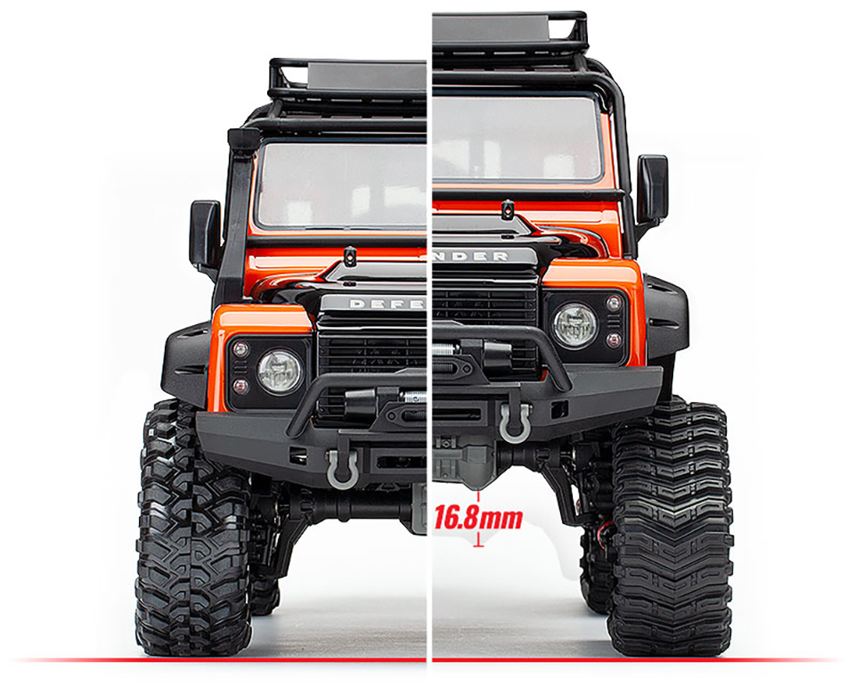 | Increased Approach Angle Traxx drastically increases both the approach and departure angles of the TRX-4. On the TRX-4 Sport, Traxx offers a full 18° higher approach angle and a 28° higher departure angle. This additional clearance allows you to tackle much steeper obstacles without snagging the bumper. |
